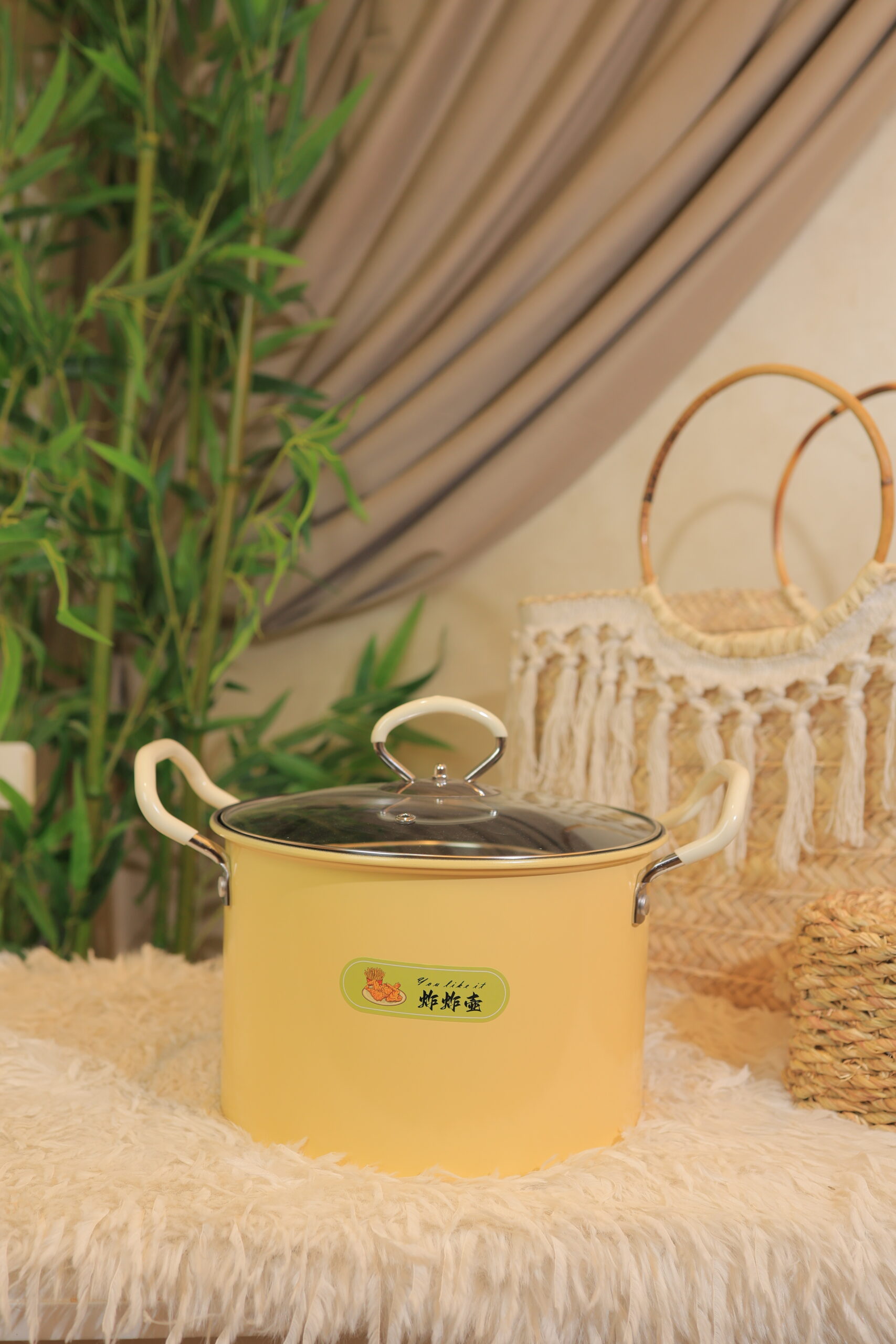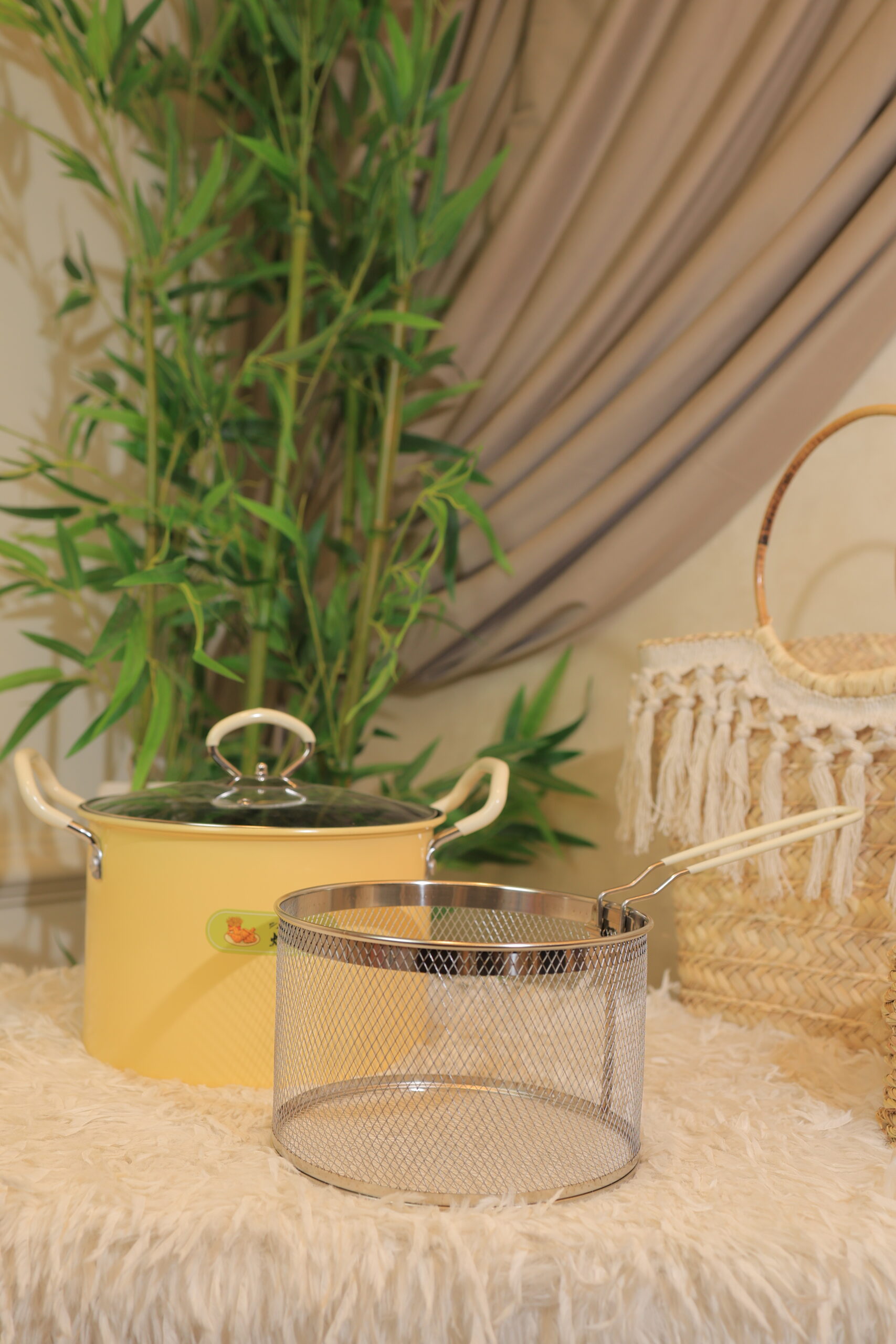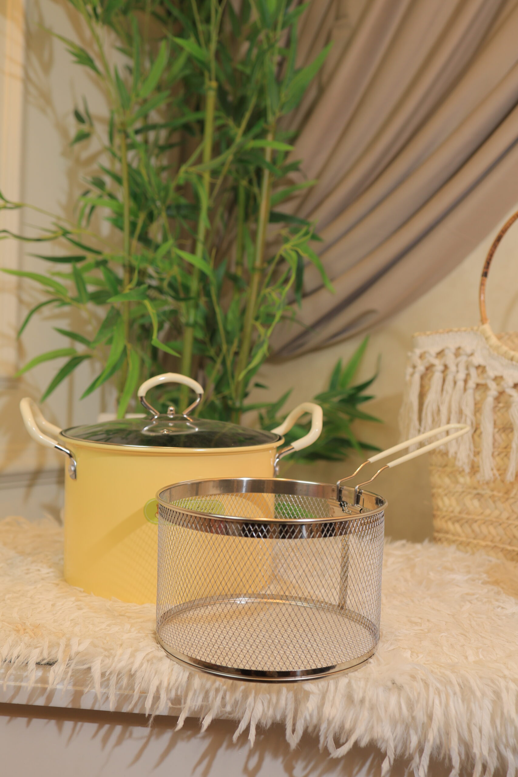 حلة تحمير بطوط 5 لتر مع غطاء بيركس حراري لمنع سقوط الزيوت وشبكة بيد لسهولة تصفية الطعام